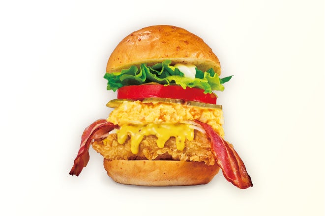 「BLTエッグチキンバーガー」は、やわらかな食感で卵の風味が引き立つたまごフィリングに、ベーコン・レタス・トマトを合わせ、ハニマソースをかけたチキンと一緒に挟んだBLT仕立て。たまごのコクが加わることで、全体の味わいに深みをプラスしています。
