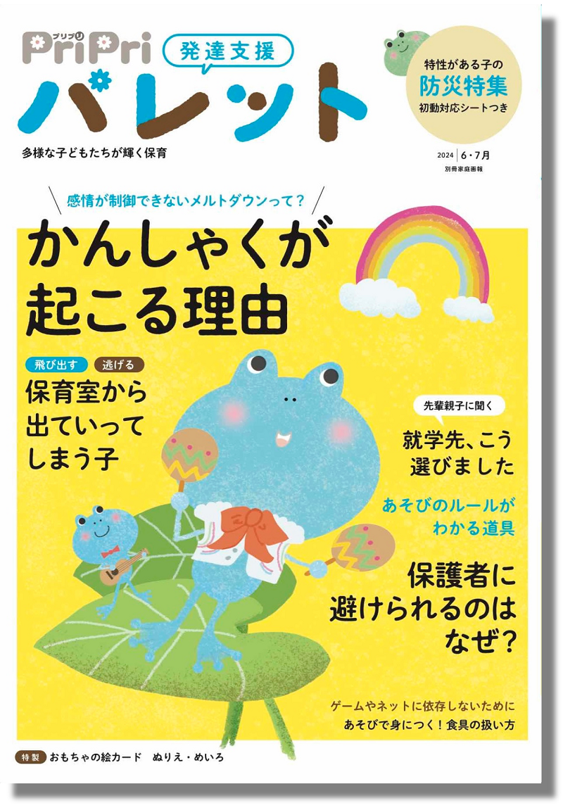 業界初、「発達障害の子」への保育に取り組む雑誌『PriPriパレット』。2024年6・7月号の特集は「発達障害の特性がある子のかんしゃくとメルトダウン」です。また、緊急特集として、発達障害の特性がある子が、災害時にパニックにならないための防災対策をご紹介します。