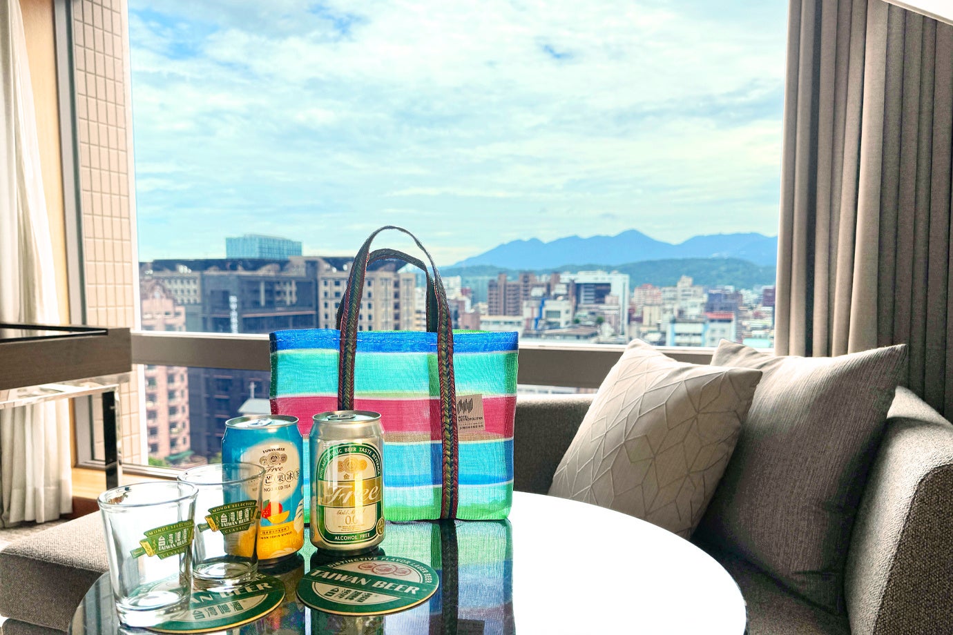 ホテルメトロポリタン プレミア 台北では、台湾の魅力をより深く感じていただけるよう「台湾満喫ギフト付」宿泊プランを販売開始いたします。ギフトには、伝統的なデザインと実用性を兼ね備えた「漁師網袋」をはじめ、台湾ビールのロゴが入ったグラス(2個)とコースター(2枚)、そして台湾の味を気軽に楽しめるノンアルコールカクテル(2本)をご用意。