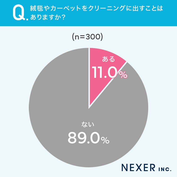 11%の方が、絨毯やカーペットをクリーニングに出すことが「ある」と回答しています。