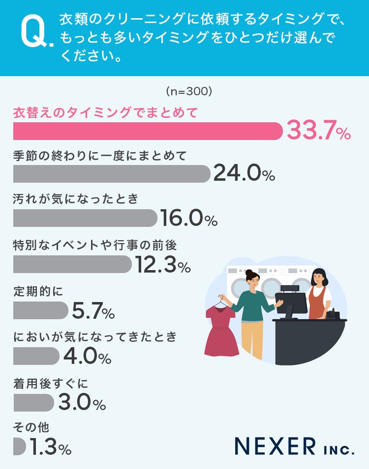 【クリーニングの依頼いつする?】33.7%が「衣替えのタイミングでまとめて」と回答しもっとも多い結果に