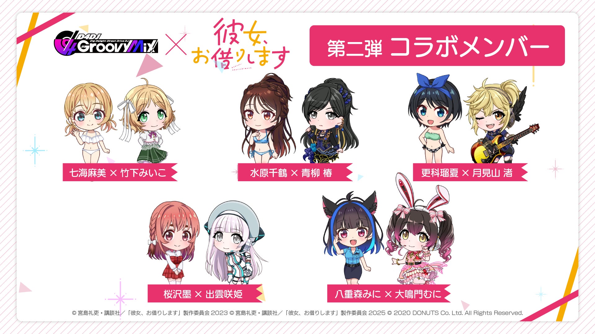 スマートフォン向けリズムゲーム「D4DJ Groovy Mix」(以下グルミク)にて、TVアニメ『彼女、お借りします』コラボイベント第二弾「DJ、またお借りします」を開催いたします。