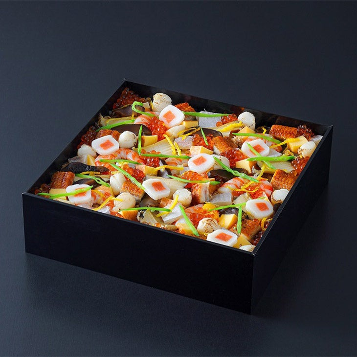 いくら、エビ、厚焼き玉子、小川巻などの12種類の素材を散りばめた母の日限定のちらし寿司です。