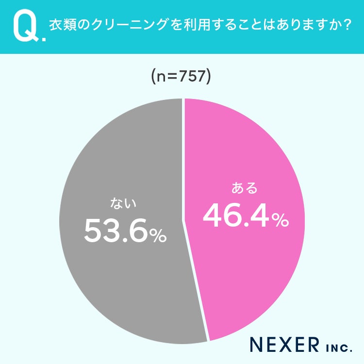 衣類のクリーニングを利用することがある方は、46.4%と半数近くに上りました。