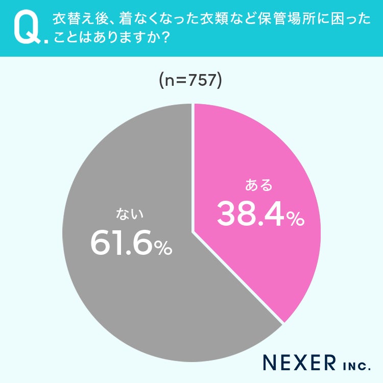■衣替え後、38.4%が着なくなった衣類など保管場所に困ったことが「ある」