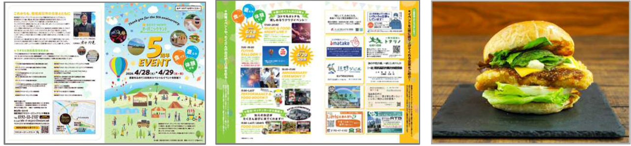 本イベントは、5年間の歩みを支えてくださったお客様や地域の皆さまへ感謝を伝えることを目的に企画いたしました。前日の「前夜祭」では、幻想的なイルミネーションと食事とともに、地元アーティストによる音楽祭を開催。イベント当日は、空からの景色を楽しめる熱気球の体験搭乗や記念式典のほか、地域団体による屋台、キッチンカー、体験ブースが多数出店し、地域の皆さまとともに節目を盛り上げます。