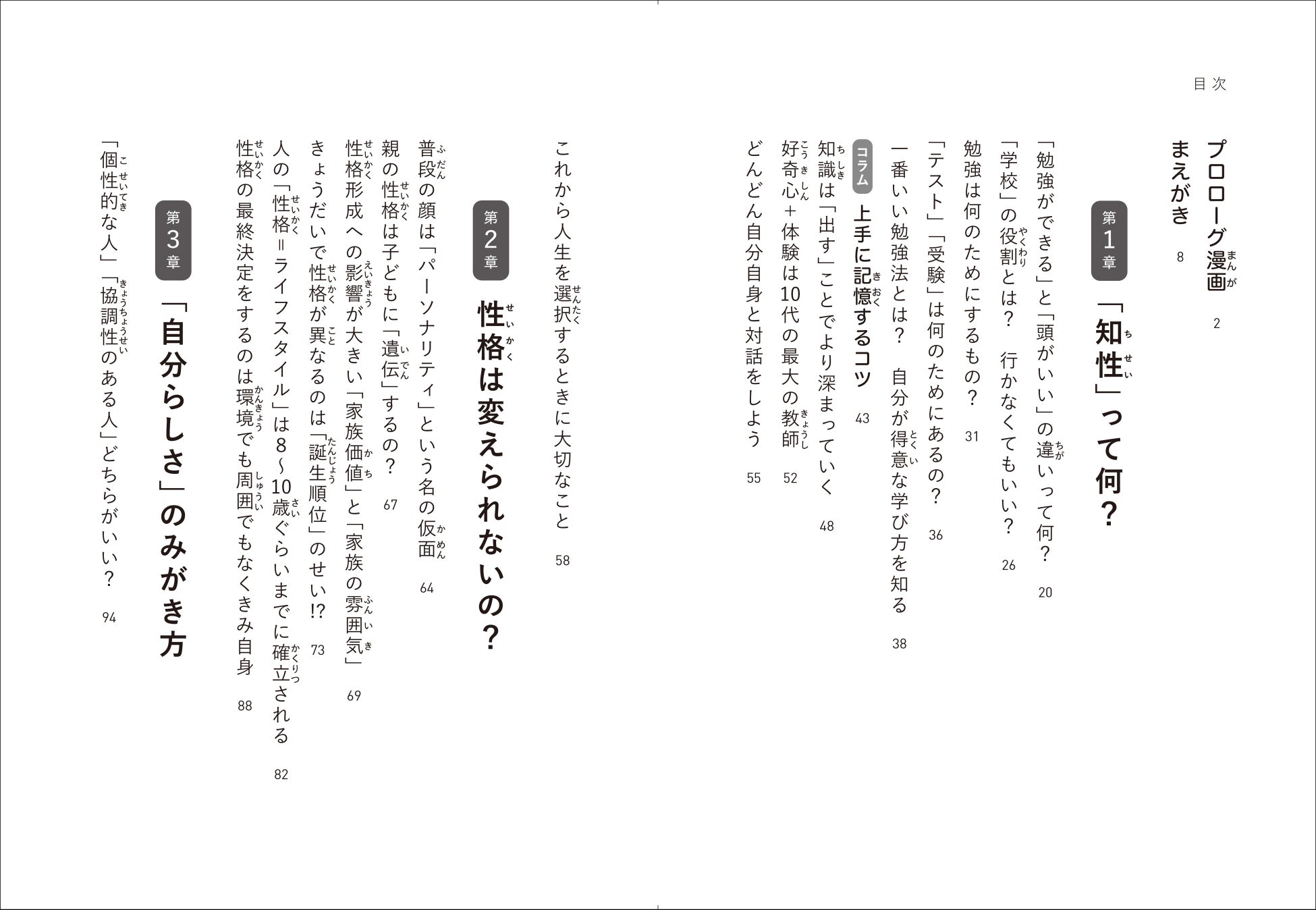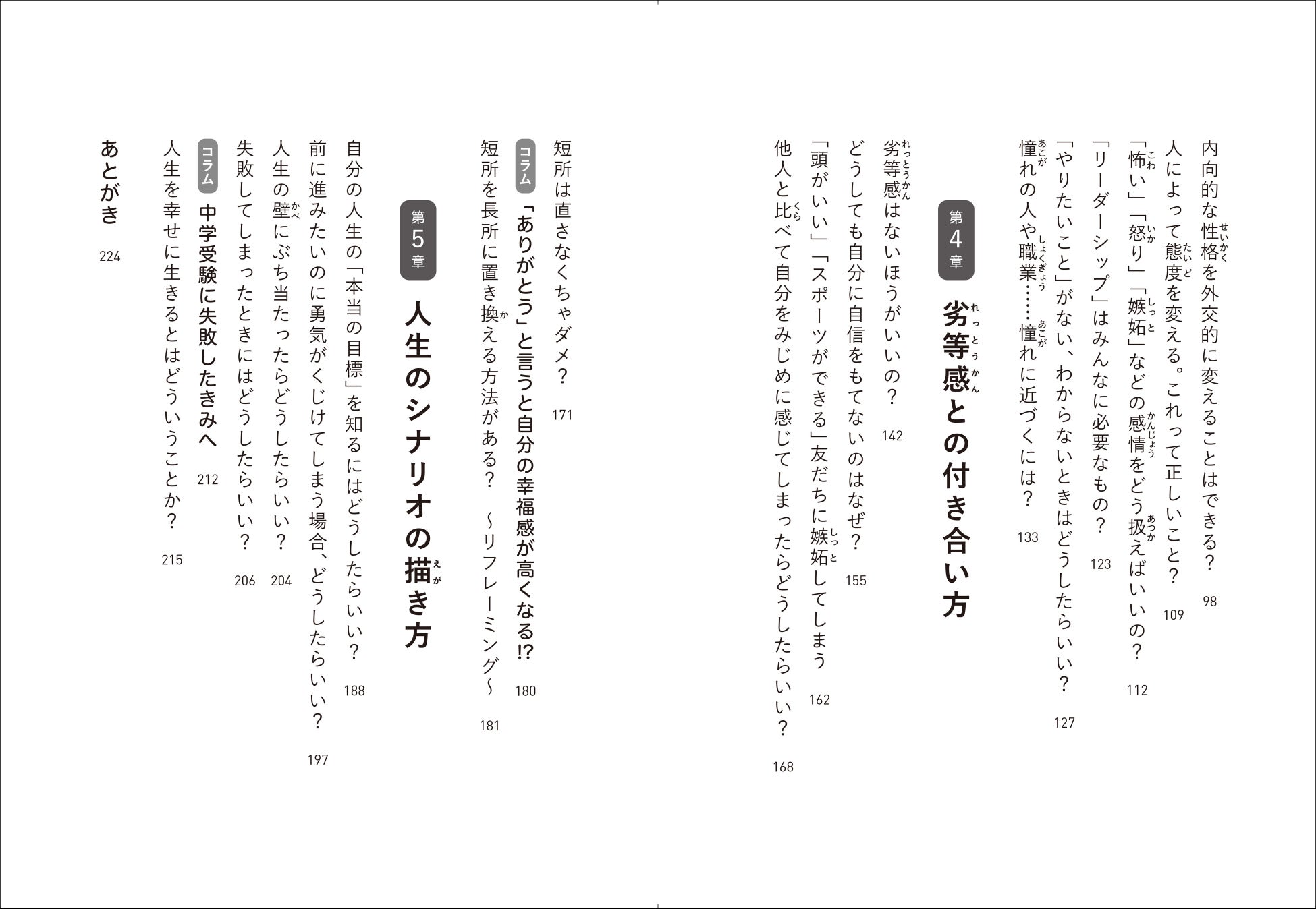 さらに、「頭がいいとはどういうことか」「性格の成り立ち」「自分らしさとは何か」「人生の目標とは何か」など、アドラー心理学のエッセンスを伝え、10代読者の悩みに寄り添います。