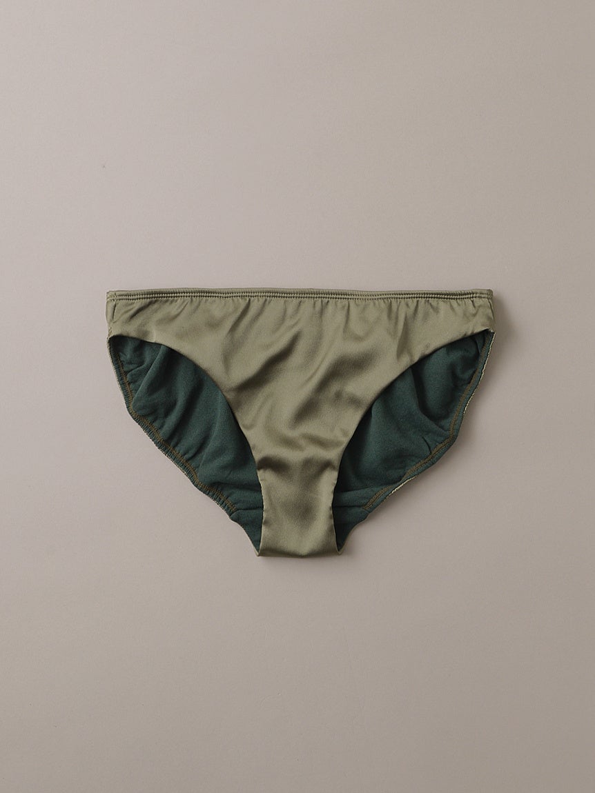 UNDERSON UNDERSON人気のビキニタイプショーツのシルエットをサテンの質感に合わせ、やや華奢な印象にブラッシュアップ。