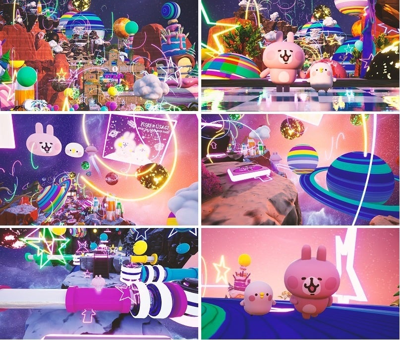 マップ内に散りばめられたピスケとうさぎのイラストを探して写真撮影をして楽しむことができ、ピスケとうさぎのオブジェクトになりきってプレイも可能です。