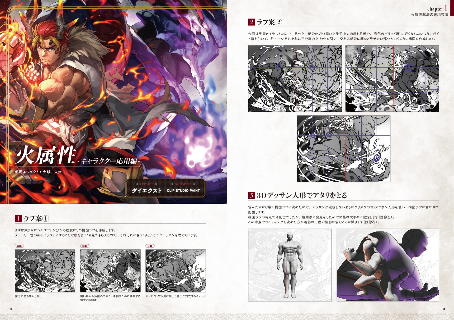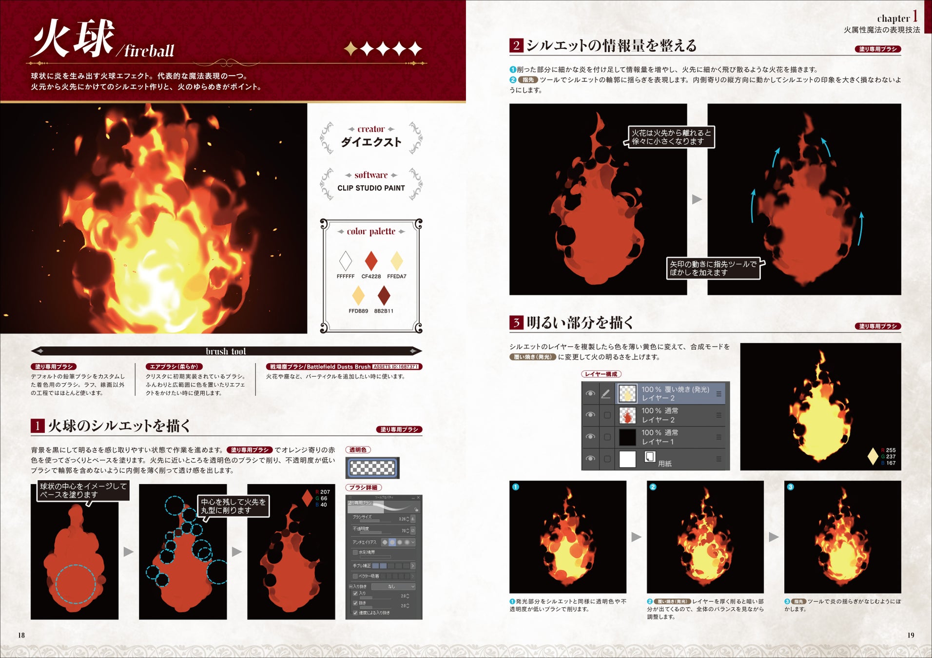 様々な設定から生み出される魔法ですが、本書では多種多様なビジュアルを持つ魔法にフィーチャーして、その基盤となる表現方法についてを1冊にまとめました。