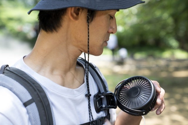 モバイルバッテリーにつなげば、リュックやカバンに固定して移動することもできるので、暑い日のハイキング、ウォーキング、通勤に携帯することも可能。