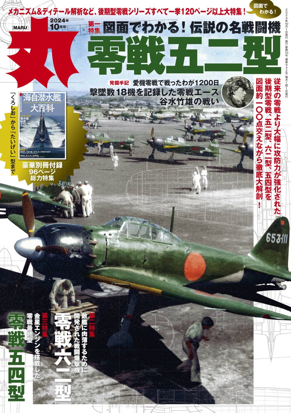 産経新聞グループの潮書房光人新社は、戦史に学ぶ人のミリタリー総合誌、月刊『丸』10月号を発売しました。特集は「零戦五二型」。米新鋭戦闘機に対抗して攻防力をアップさせた後期型零戦のメカニズムを図版100点を交え徹底解剖。当時のエースパイロットの実戦手記も加えて紹介します。グラビアは首都防空に活躍した厚木零戦隊秘蔵写真です。今号は96㌻の別冊付録「海自潜水艦大百科」付き。第1号「くろしお」から最新の「たいげい」型まで海自潜水艦を紹介します。