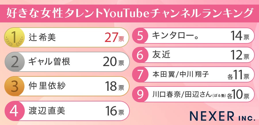 株式会社NEXER・好きな女性タレント(芸能人)のYouTubeチャンネルに関する調査