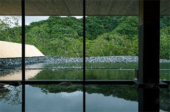 2022年4月にオープンした、キャンプ用品でおなじみ「スノーピーク」が手がける温泉施設。設計は隈研吾氏が担当しており、建物の雰囲気は趣があり、そして開放的。大浴場だけでなくサウナ室からの景色も抜群で、サウナストーブを囲む配置はまるで焚火を囲むかのような感覚で楽しめる。食事ができる湯上り処では、大きな窓越しに自然を眺めながら過ごせる。