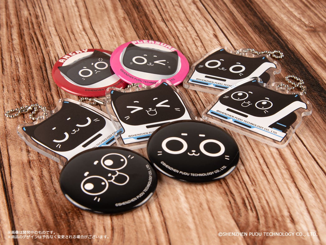 グッズが登場。表情パターンを活かしたカラフルな缶バッジや、描きおこしのディフォルメイラストを