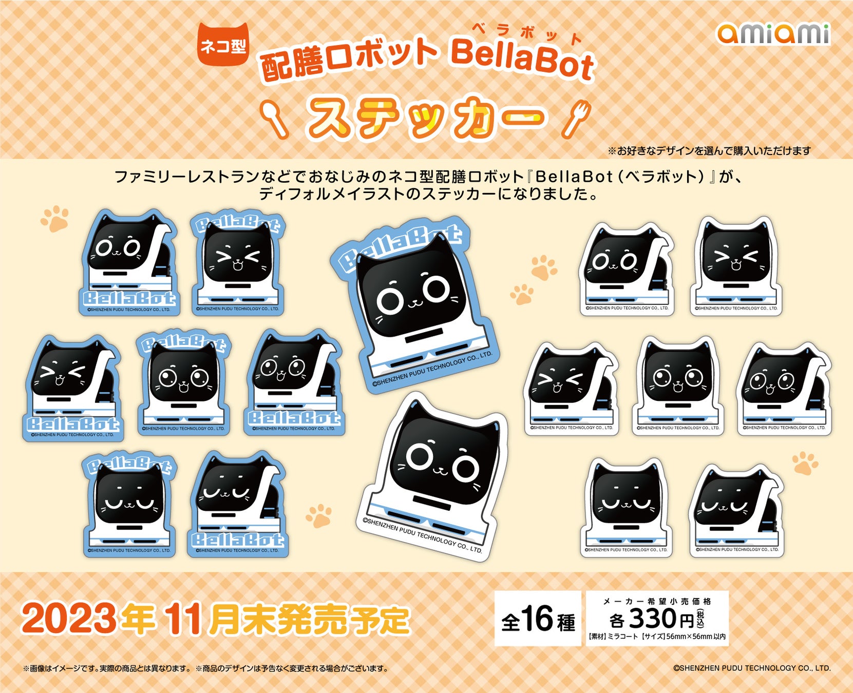 ファミリーレストランなどでおなじみのネコ型配膳ロボット『BellaBot(ベラボット)』が、ディフォルメイラストのステッカーになりました。お好きなデザインを選んで購入いただけます。