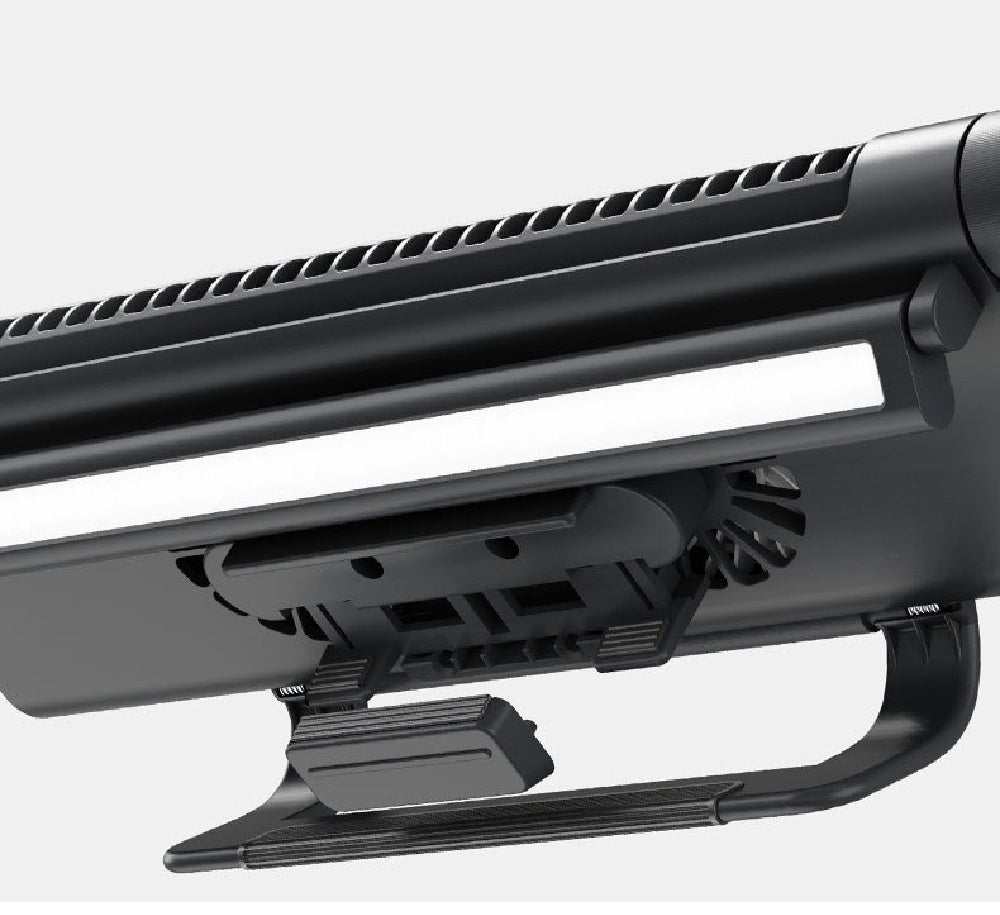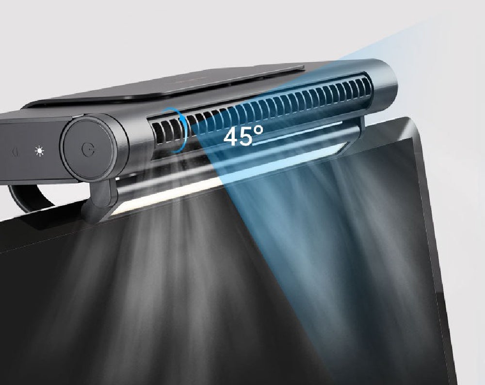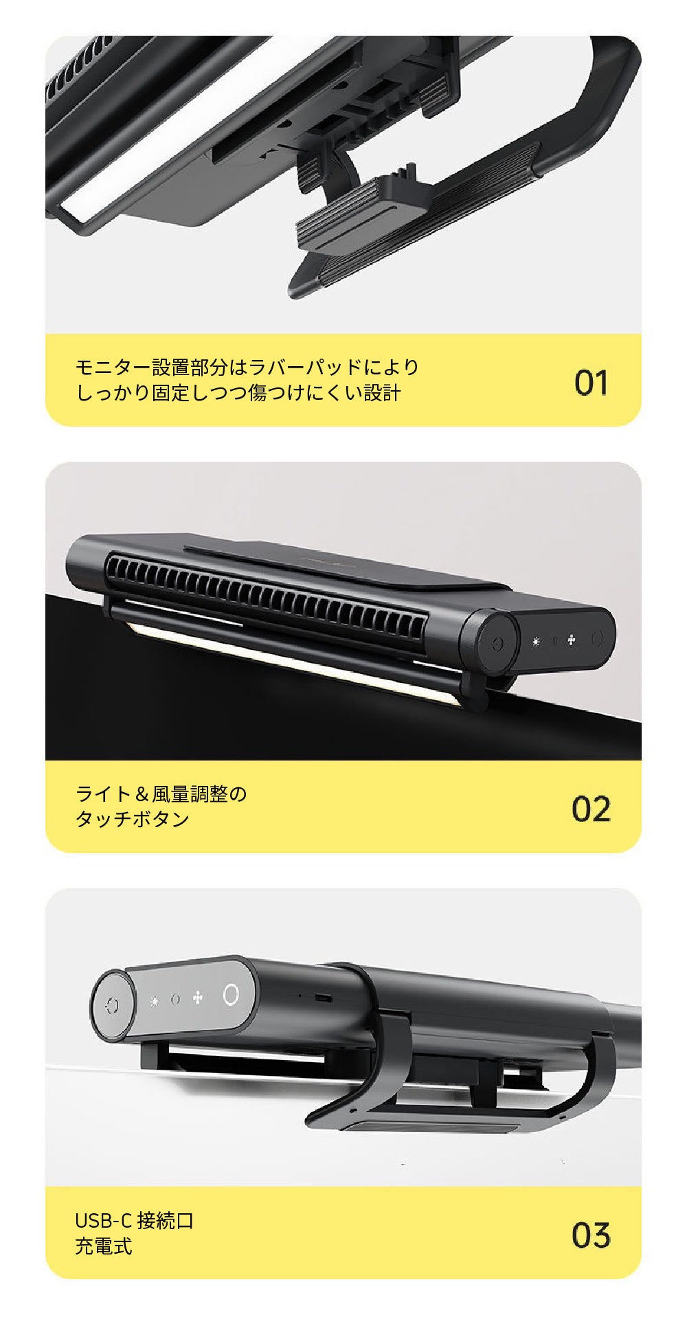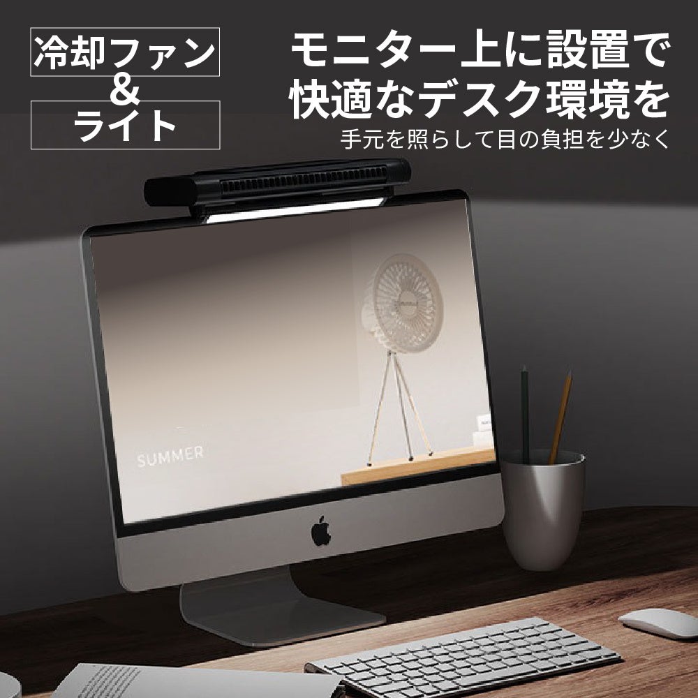 - モニターの高い位置から効率的に送風&ライトで涼しく快適な環境を