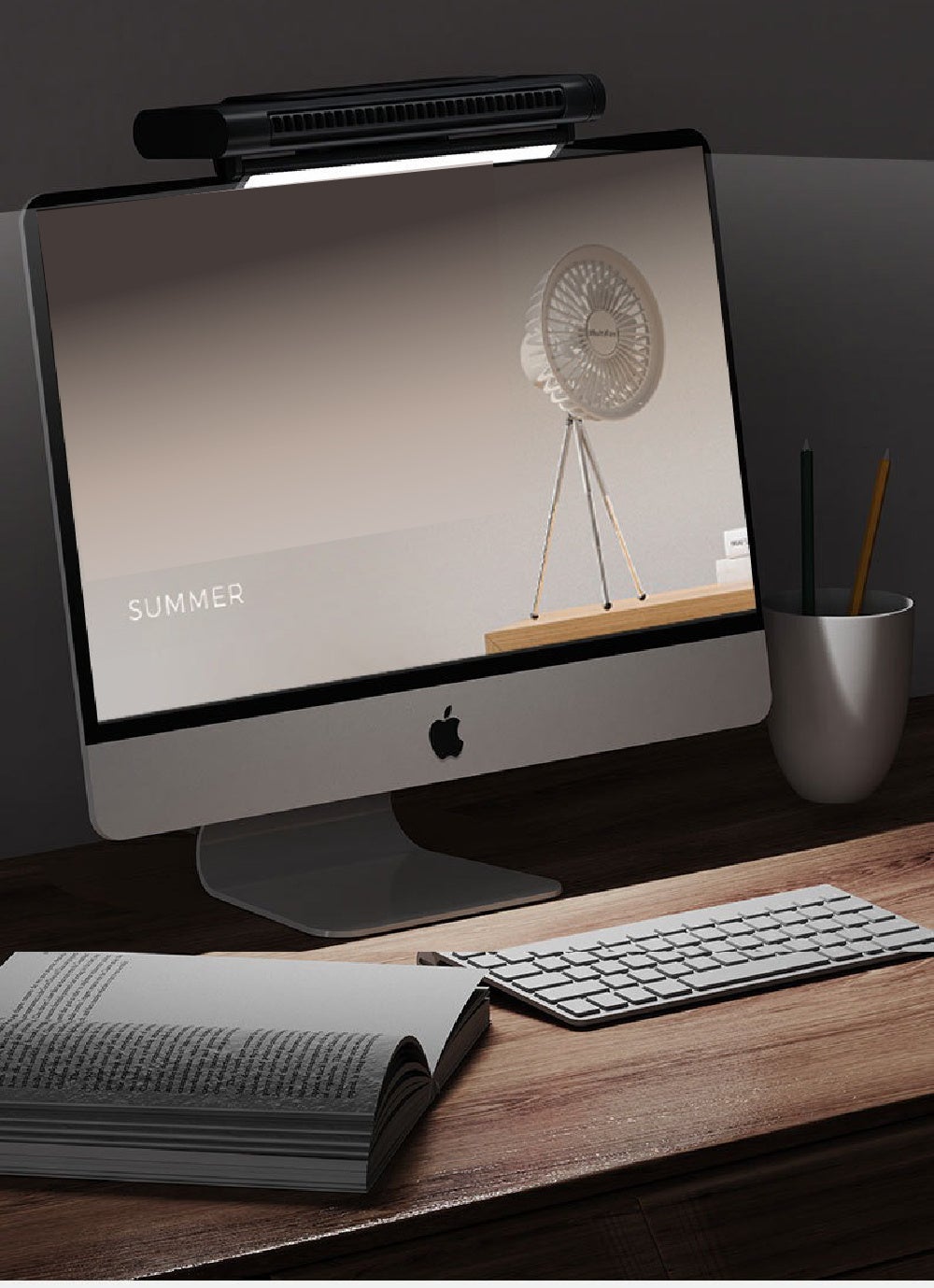 モニター上に設置する、新感覚のコンパクト扇風機&手元を照らす照明「MoniFan-G」をガジェットストア「MODERN g」で販売開始