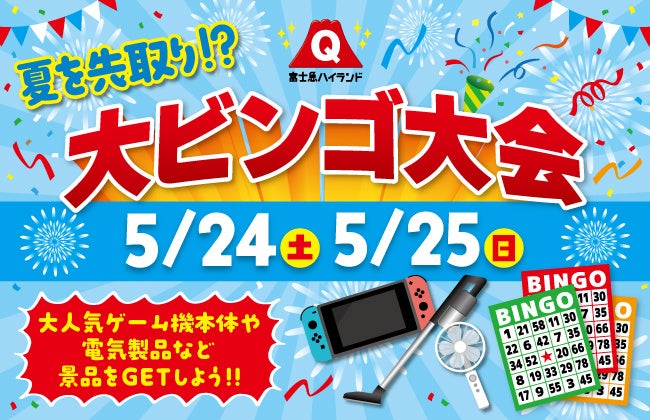 入園無料の富士急ハイランド(山梨県富士吉田市、社長:上原 厚)は、2025年5月24日(土)、25日(日)の2日間、富士急グループ施設のチケットや大人気ゲーム機など豪華景品が当たる『大ビンゴ大会』を開催します。
