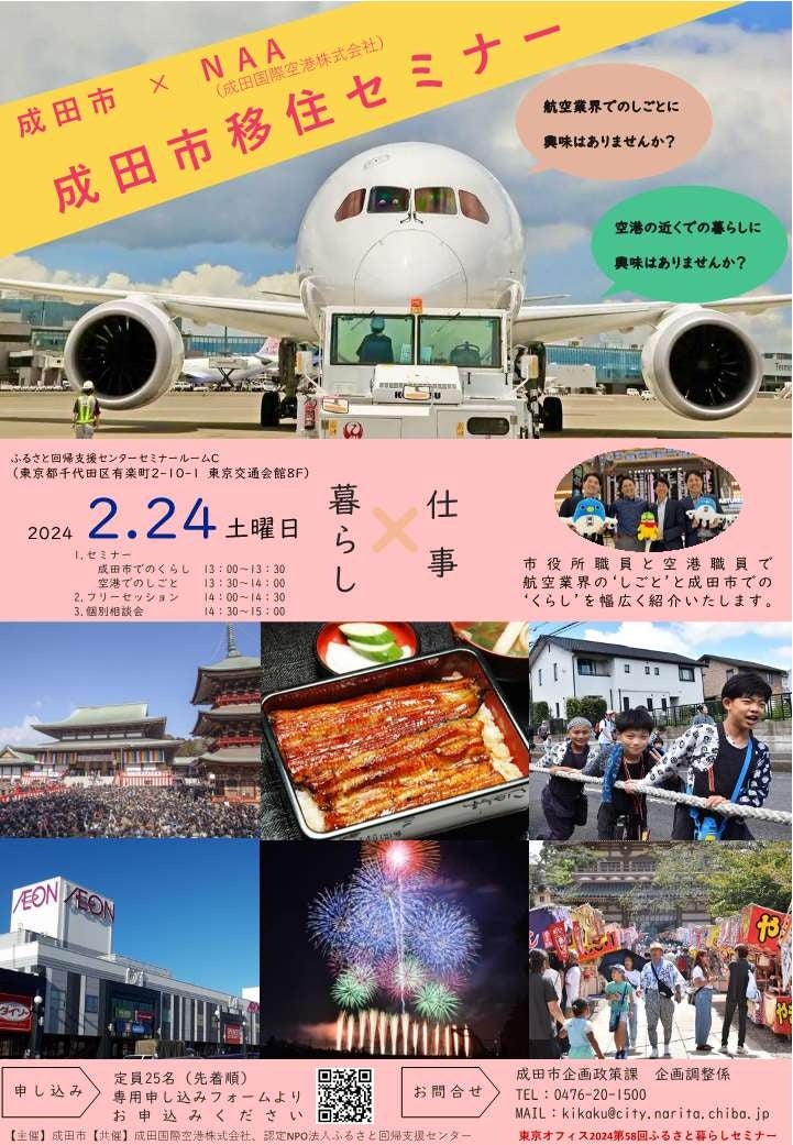「成田市×NAA(成田国際空港株式会社) 移住セミナー」(事前申込制)
