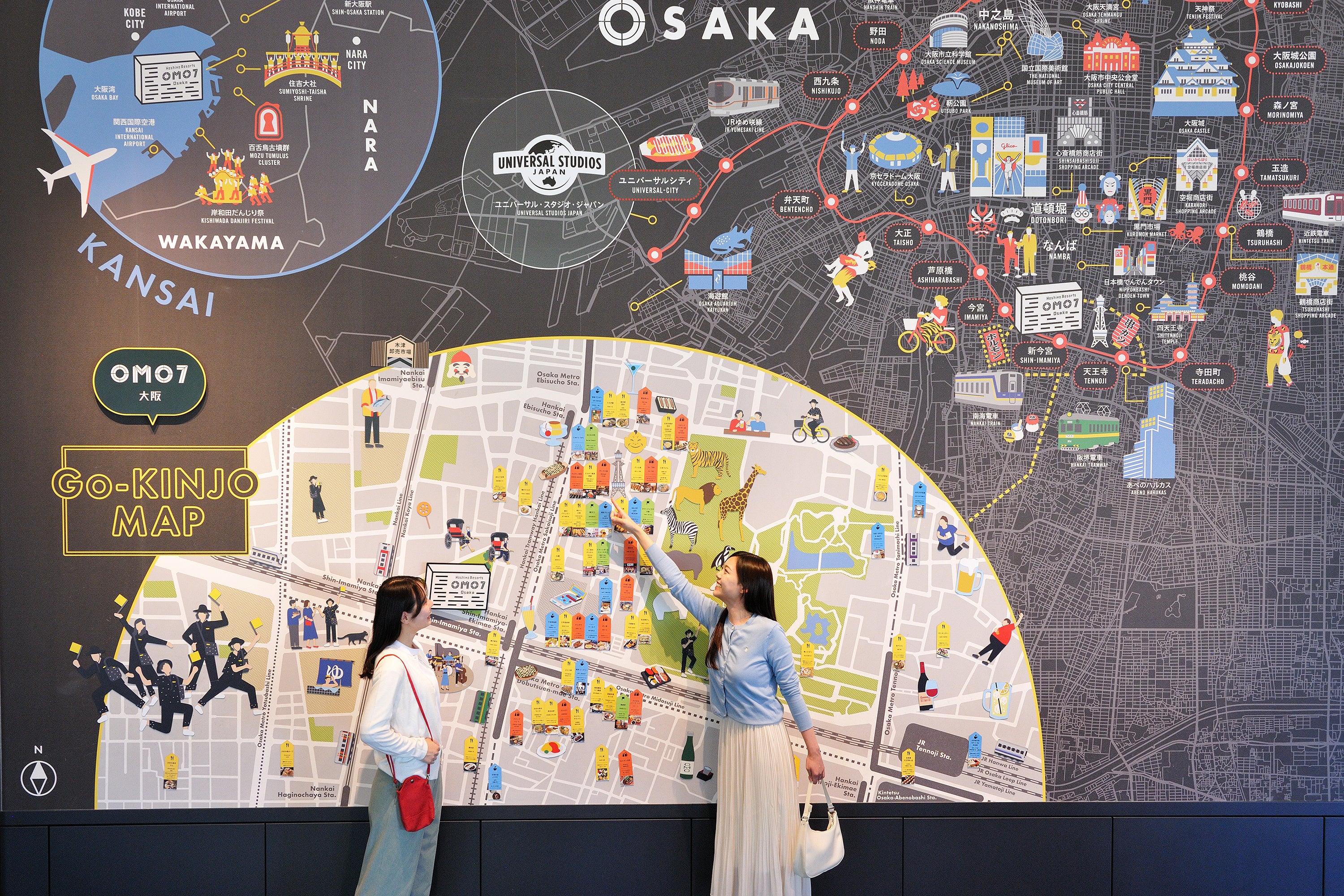 「Go-KINJO」は、街に精通したスタッフ「OMOレンジャー」が、ディープな街歩きから人気の観光スポットの攻略法まで、地域の詳細な情報を元に、とっておきの楽しみ方を提案するサービスです。「ご近所マップ」の掲示の他、ホテル館内外でホテル周辺の魅力をお伝えする「ご近所アクティビティ」にて、街の楽しみ方を提案しています。新世界エリアをガイドしながらディープなスポットにご案内する「ほないこか、ツウな新世界さんぽ」や、近くの市場で大阪のだし文化を紹介する「ええだし出てますわツアー」は、知らなかった街の魅力を知ることができたと参加者からも好評のアクティビティです。