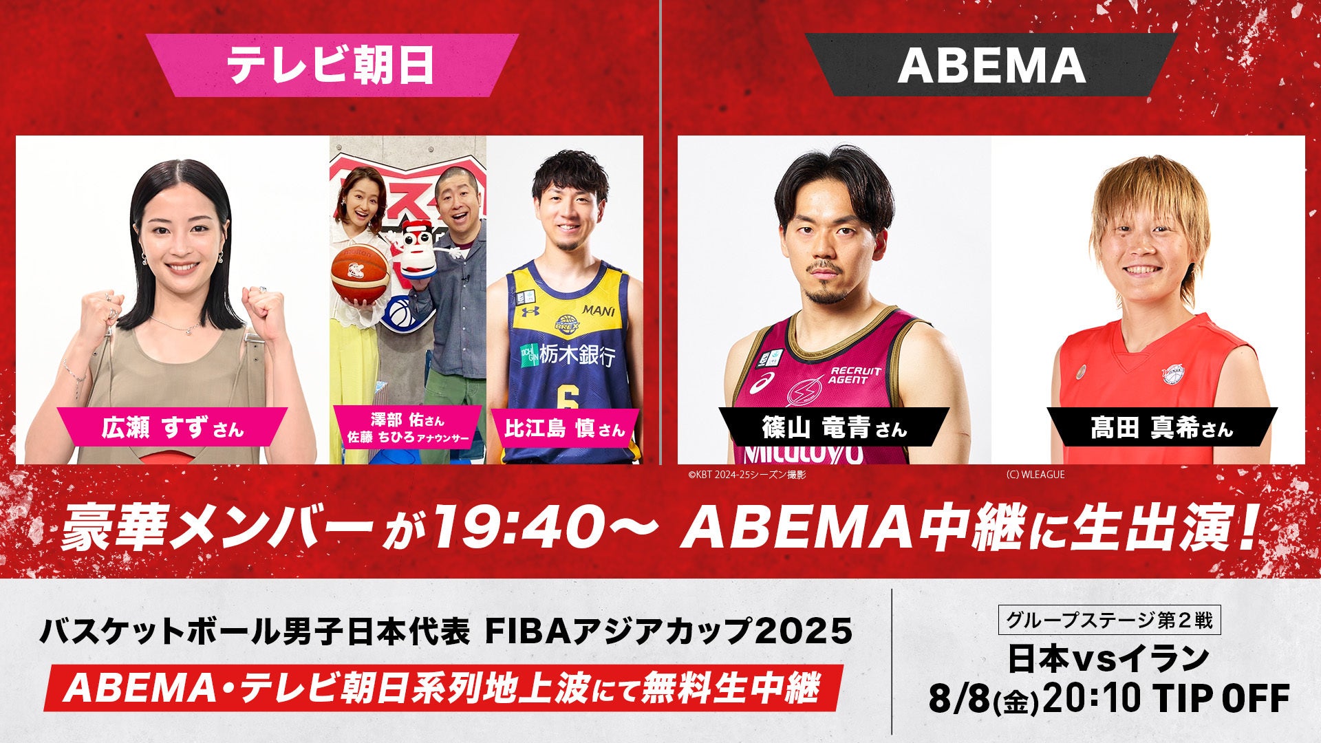 「ABEMA」・テレビ朝日がFIBAアジアカップ2025『日本vsイラン』にて“放送の垣根”を越えた共同中継を実施!「ABEMA」初登場の広瀬すずに加え、比江島慎・澤部佑ら豪華ゲストが集結