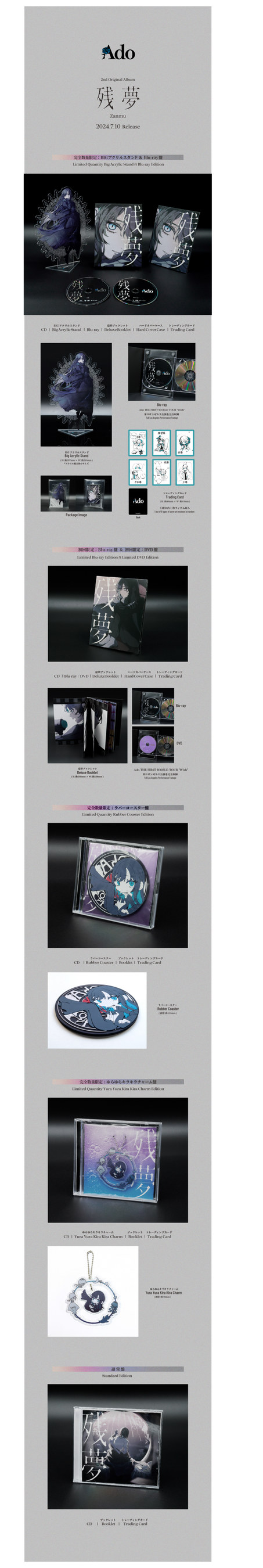 また本作の発売を記念して初のPOP-UP STORE「Ado『残夢』POP-UP STORE」がUNIVERSAL MUSIC STORE HARAJUKUにて7月5日(金)〜7月20日(土)の期間限定で開催中です。
