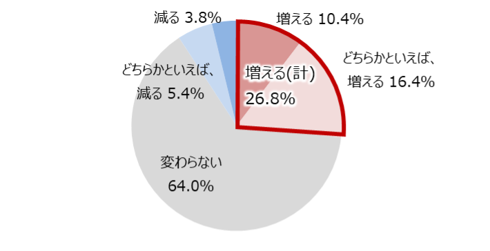 - コロナ5類移行後に就業・求職意欲が増えると回答した人は26.8%。非正規社員の増加予定数が最も多い業種は[飲食・宿泊]で約5割強【図3、4、5、6】