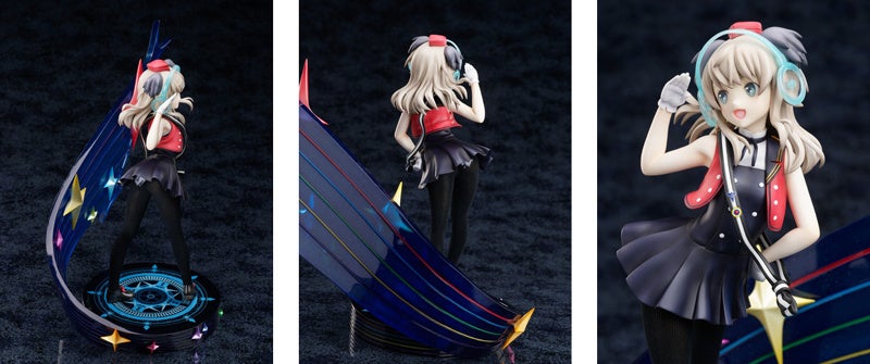 今回「F:NEX」では、不思議な雰囲気をまとった本作の主人公・ヴァージニア・ロバートソン(愛称:ジニー)をライブ衣装でフィギュア化。特徴である亜麻色の髪は毛流れを丁寧に造形、水色のヘッドフォンはクリア素材を採用し、キャラクタービジュアルを忠実に再現いたしました。また、黒タイツは布製でリアルな質感を追求しつつ、スカートからのぞく尻尾がかわいらしさを演出します。さらに、「F:NEX」オリジナルデザインの五線譜と星で音符をイメージした台座は、クリア素材とパール塗装によってポップでかわいらしい様をいっそう引き立てます。ライブ衣装でかわいく敬礼ポーズをとるジニーが余すことなくご堪能いただけます。