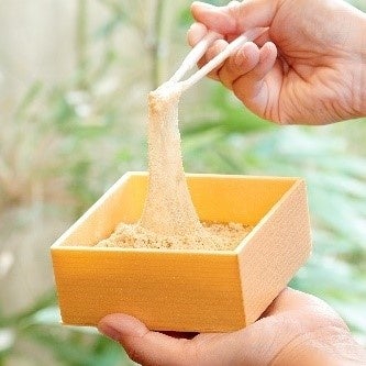 京都嵐山に本店を構える〈竹路庵〉。名物のわらび餅をはじめ、季節の和菓子が好評です。(上)吟味に吟味を重ねた原材料を使い、独自の配合と製法によって特別に仕立てるこのわらび餅は、カットすることなく箱一面に流し込んでいます。お箸でたぐると切れることなくねっとりと伸びるやわらかさが特徴。(下)甘酸っぱいジューシーないちごに合うようにつくったやわらかいお餅と甘い餡が絶妙なバランス。