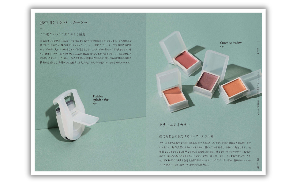 無印良品のスキンケアやメイクアップのコスメは、高品質なのに実用的な価格、様々な肌悩みに対応する豊かな品揃えで、年齢や性別を問わず人気です。本書は、そんな無印良品の商品がなぜクオリティが高いのかを紐解き、セルフケアや、メイクの方法を紹介します。暮らしに無理なくセルフケアをしたい人、肩の力を抜いて美しく健やかでありたい人、シンプルなスキンケアを求めている人に向けた1冊です。