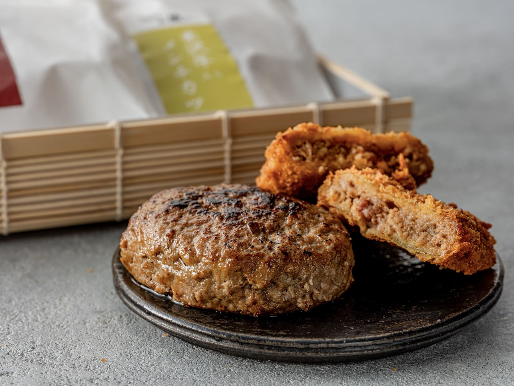 上質で濃厚な極上の米沢牛と国産豚の合い挽きハンバーグと、米沢牛をふんだんに使用した極上のメンチカツの大満足なセットです。