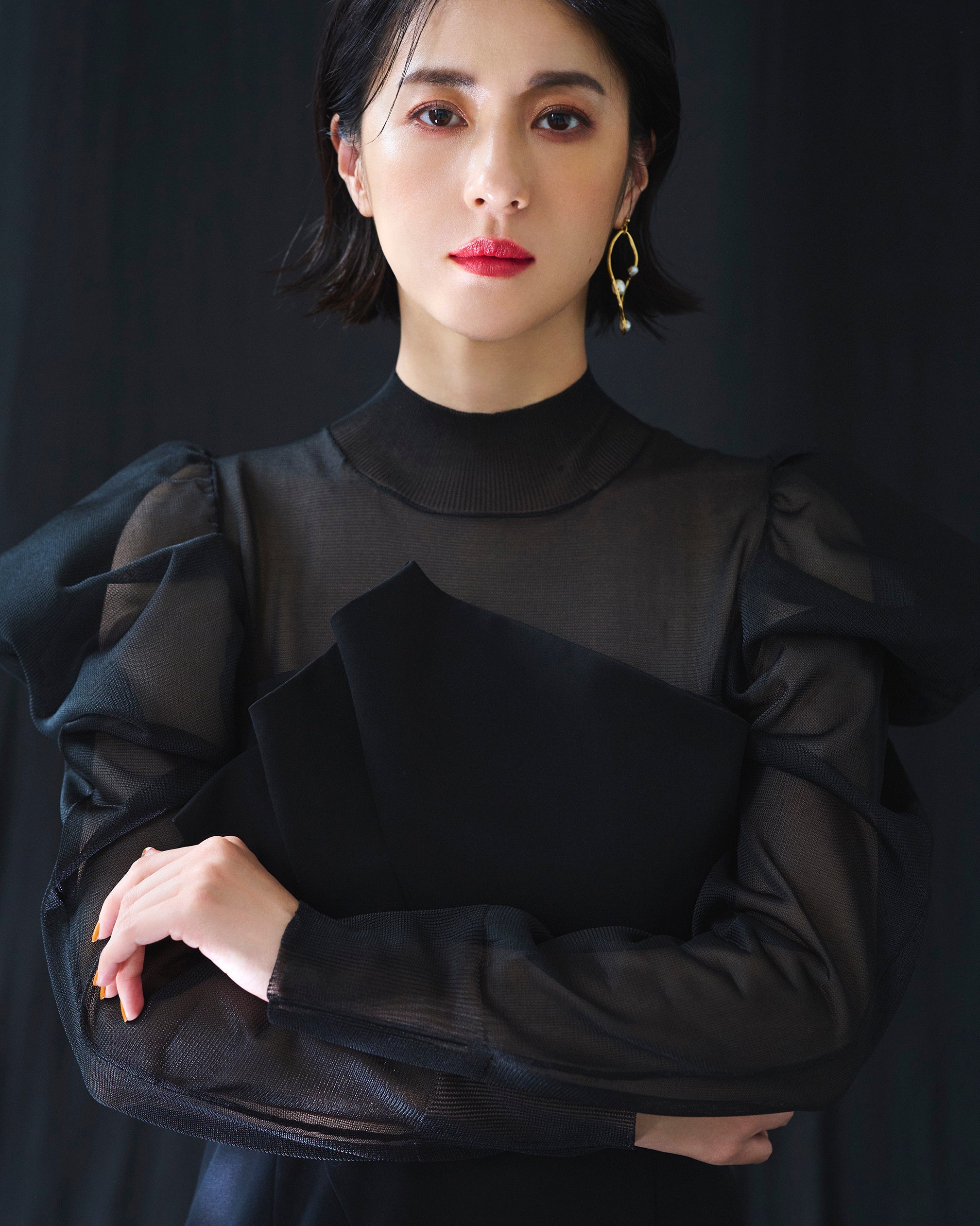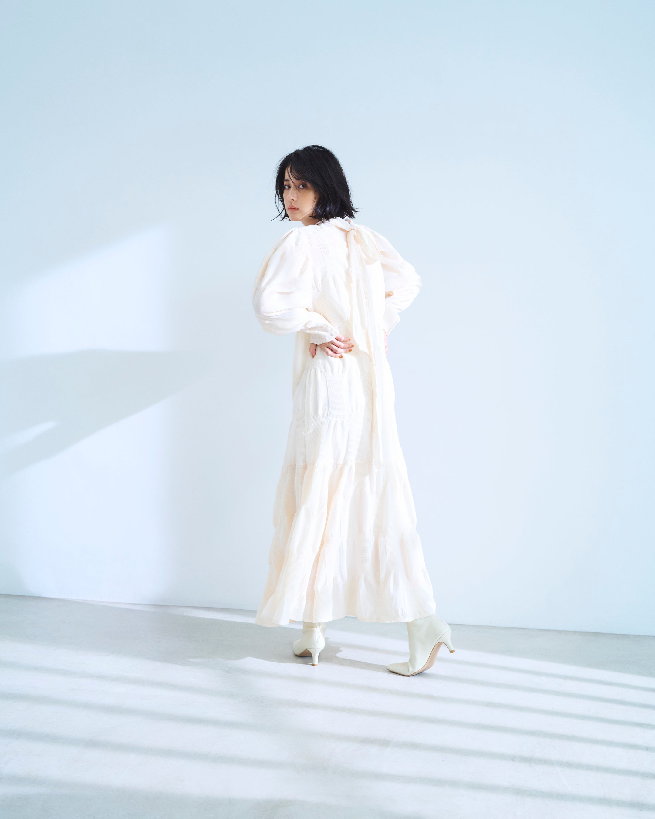 「ファッションは元々好きなんです。学生の頃古着にハマり、その後も様々なジャンルの服に挑戦し、自分に合うかどうか、好きかどうかが分かってきて、今やあまり失敗をしなくなりました。好きなテイストはたくさんありますが、私服から衣装に着替えた瞬間に仕事のスイッチが入るので、プライベートではその時の役柄と真逆の雰囲気のものを選んでいます。テロンとした服、かっちりとした服…それをまとって印象の変化する自分が愉しいですね」