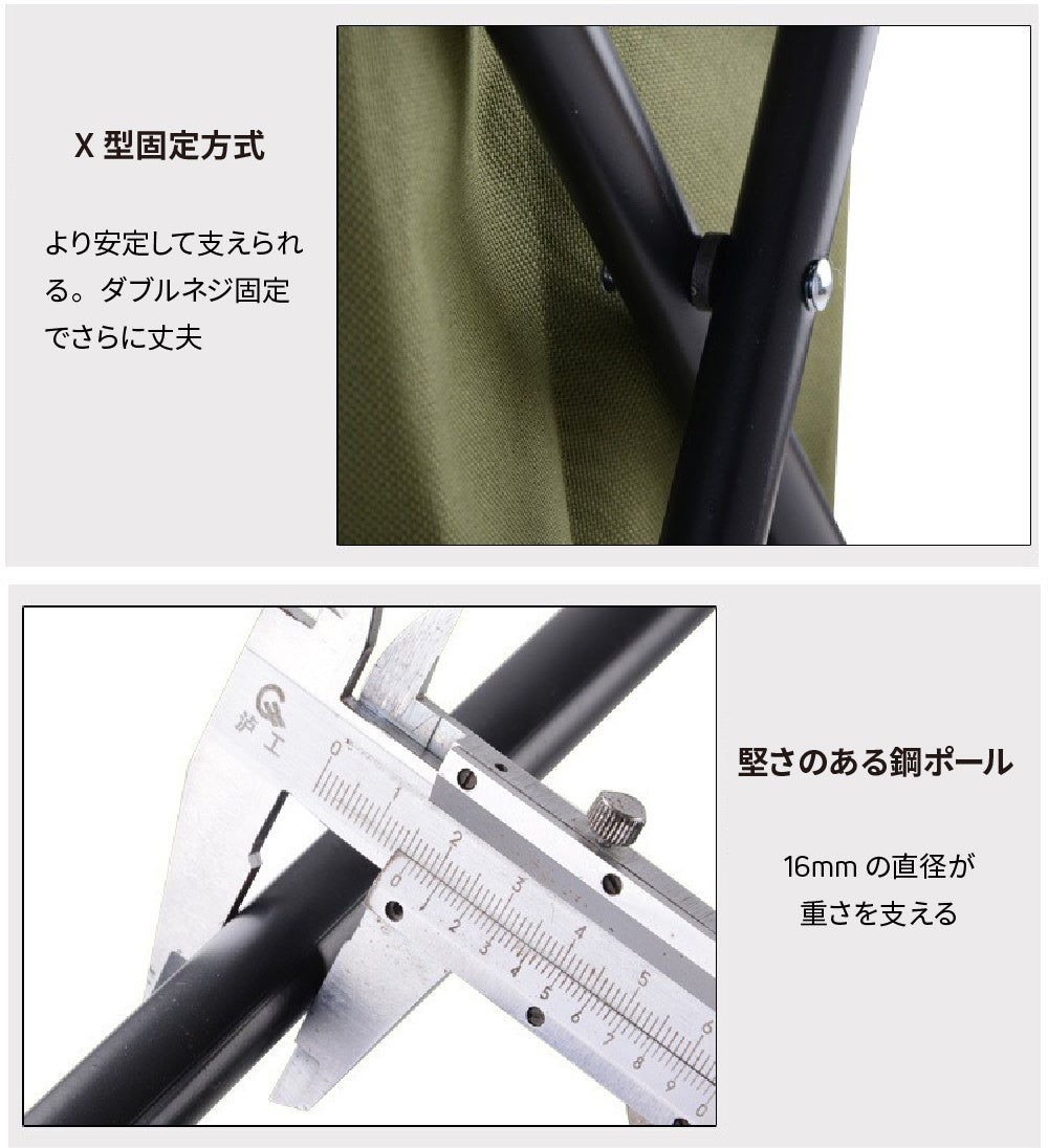 X型の固定方式とダブルネジを採用しているのでさらに丈夫な作りになっています。