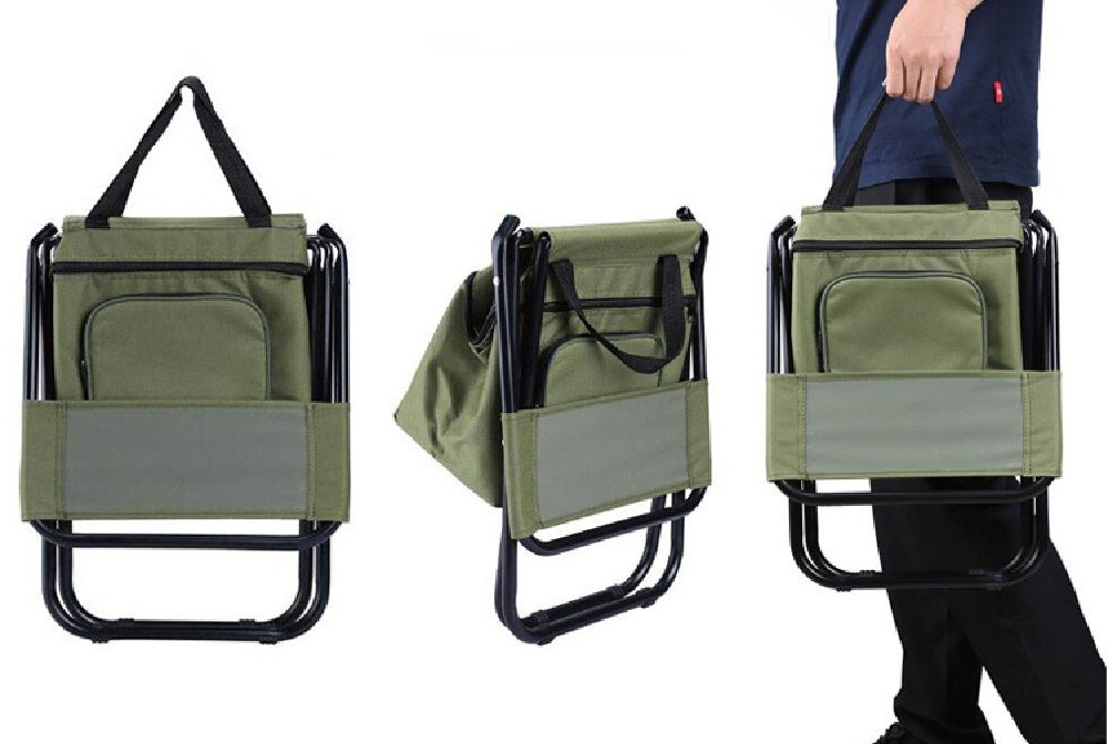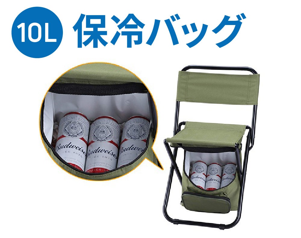 イスの下部分には保冷バッグが搭載されており、冷たい飲み物を収納できます。