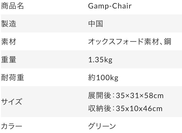 - 便利な折りたたみ式イス「GAMP-CHAIR」