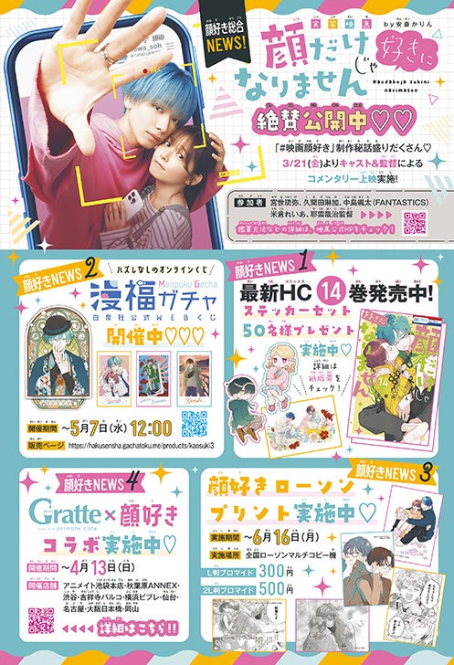 実写映画公開中!「顔だけじゃ好きになりません」(安斎かりん)が巻頭カラーで登場!