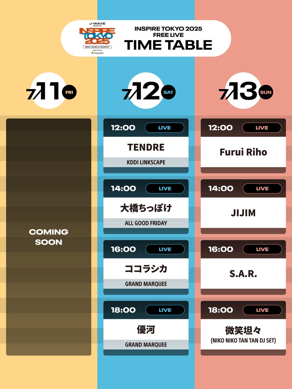 7月10日(木)~13日(日)「J-WAVE presents INSPIRE TOKYO 2025 ~Best Music & Market~supported by Expedia」開催