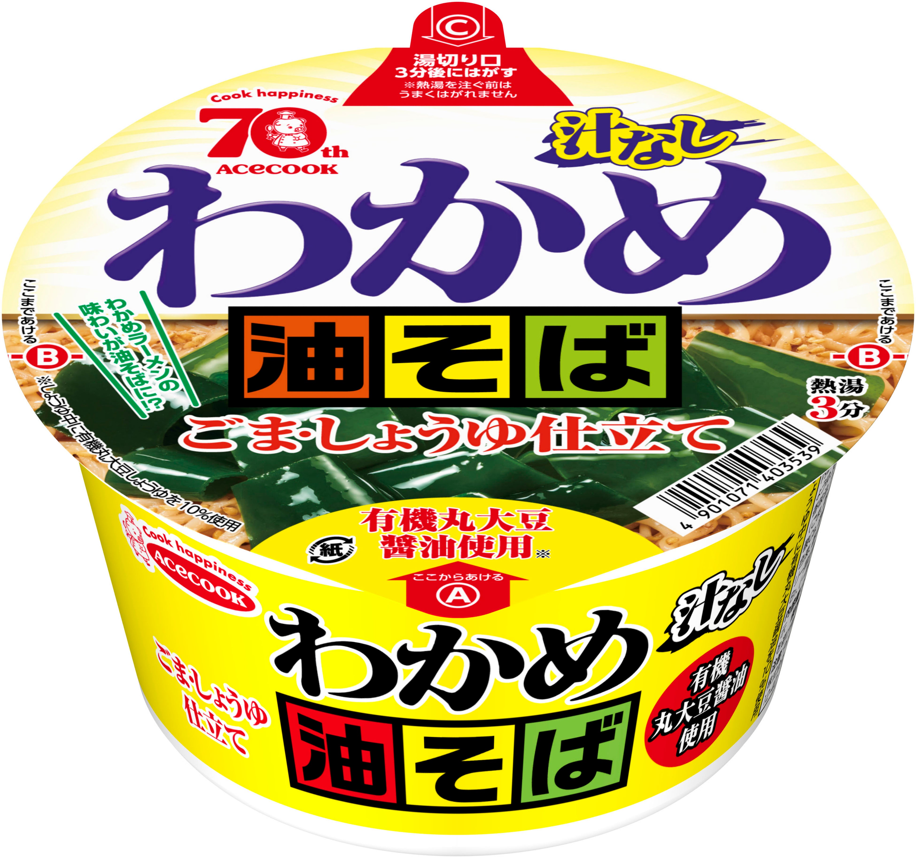 食物繊維豊富な海の野菜「わかめ」をたっぷり入れた、エースコックのロングセラーブランド「わかめラーメン」シリーズから、汁なしメニュー「油そば」が新登場。香ばしく焙煎したごまの香り、スパイスを利かせた「わかめラーメン」のおいしさを油そばで再現しました。
