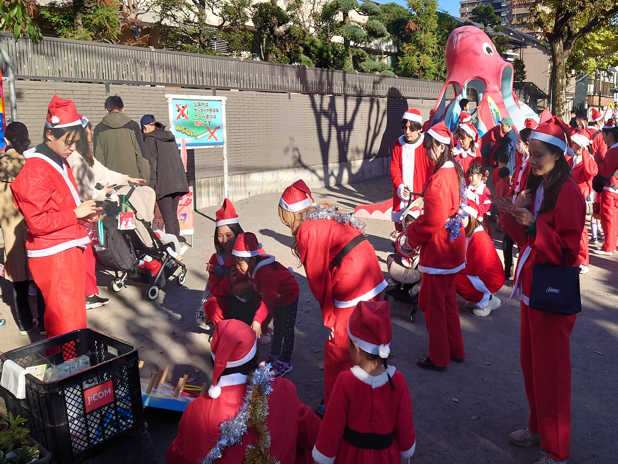 <街歩きイベント> イベント当日、参加者全員でサンタクロースの衣装を着て千住の街を歩き、コース上でのゲームやスタンプラリーイベントを楽しみます <サンタクロースデリバリー> |