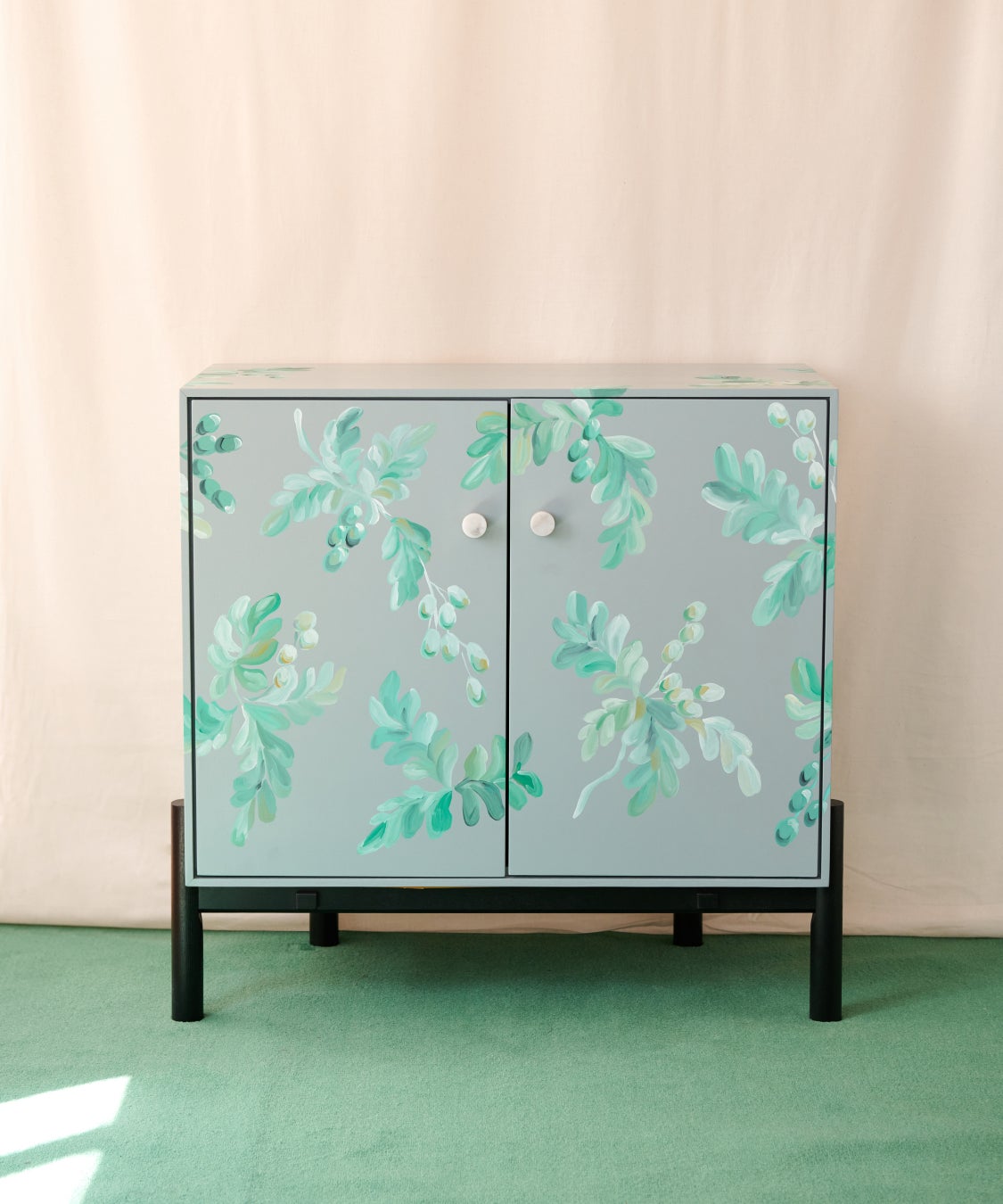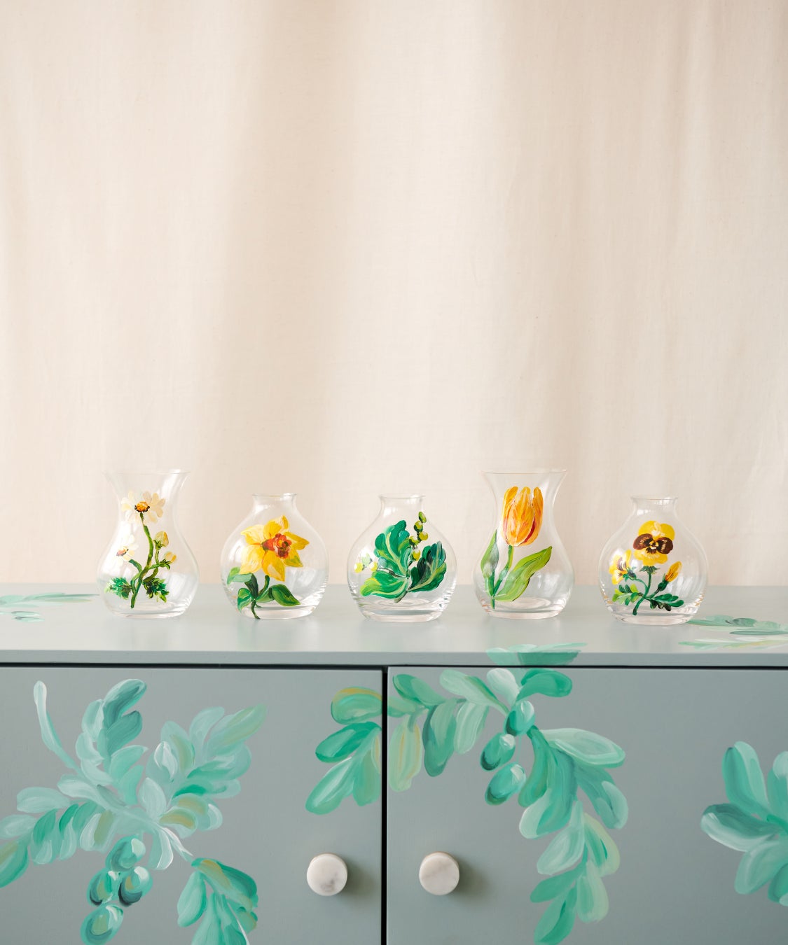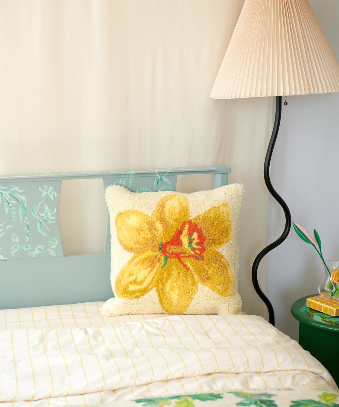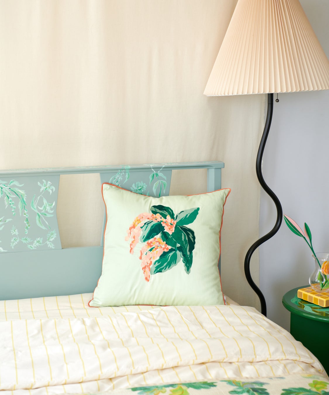 シンプルになりがちなベッドルームに彩りを与えてくれるスローケットやクッションカバーのファブリックアイテムを中心に、ハンドドローイングで鮮やかに花を描いた一点物の家具も新たに登場します。