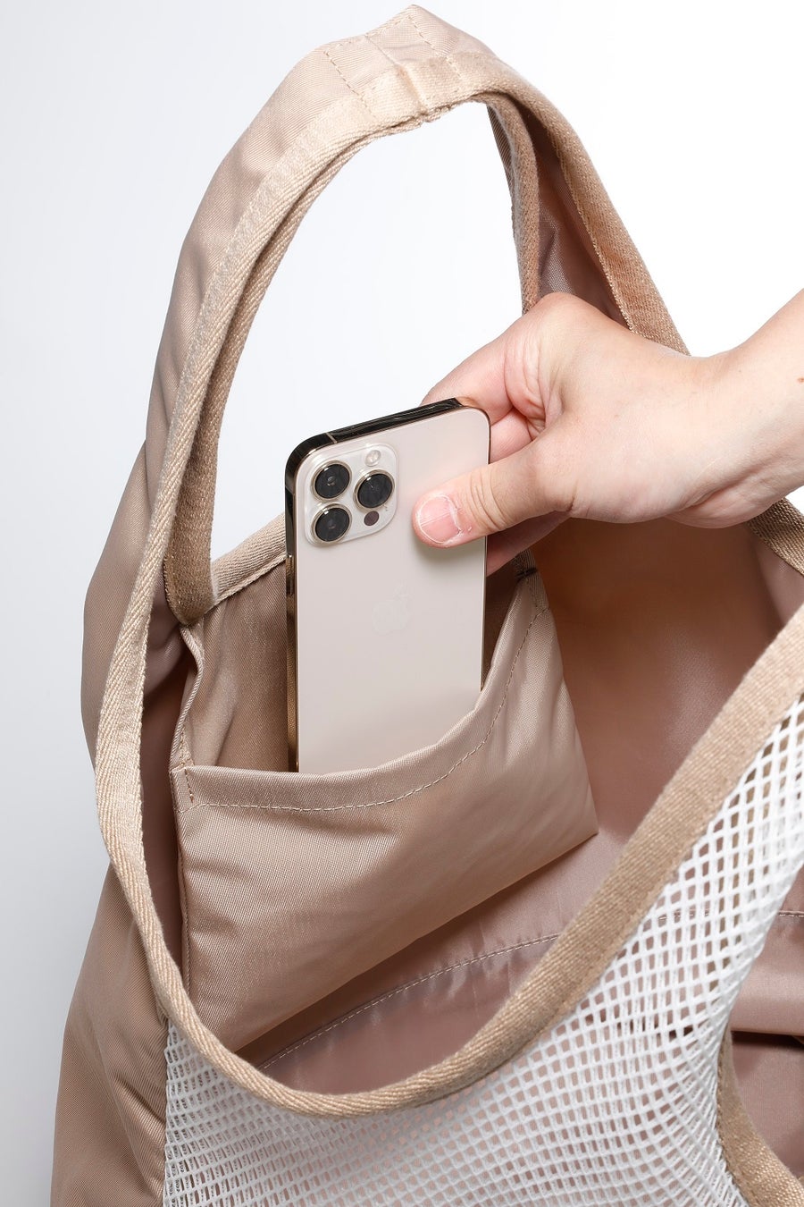 また前面部に見た目に涼しげなエアメッシュ素材、背面部にナイロンのツイル生地を採用したハーフメッシュ構造なので、通気性は抜群で、速乾性に優れています。使用済みのタオルや水着などを安心して収納できるので、海水浴やキャンプ、音楽フェスといった夏のレジャーでも活躍。ニオイがこもりにくく、毎日清潔に使えるのも嬉しいポイントです。