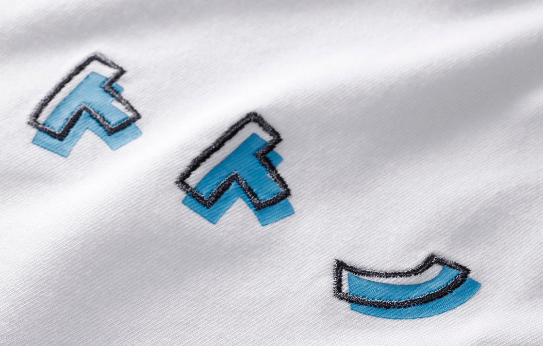 こだわったのは大人がさりげなく袖を通せるキャラクターTであること。漫画の描き文字を刺繍で表現した文字のフチと、プリントの版の位置をズラし、ポップに仕上げました。