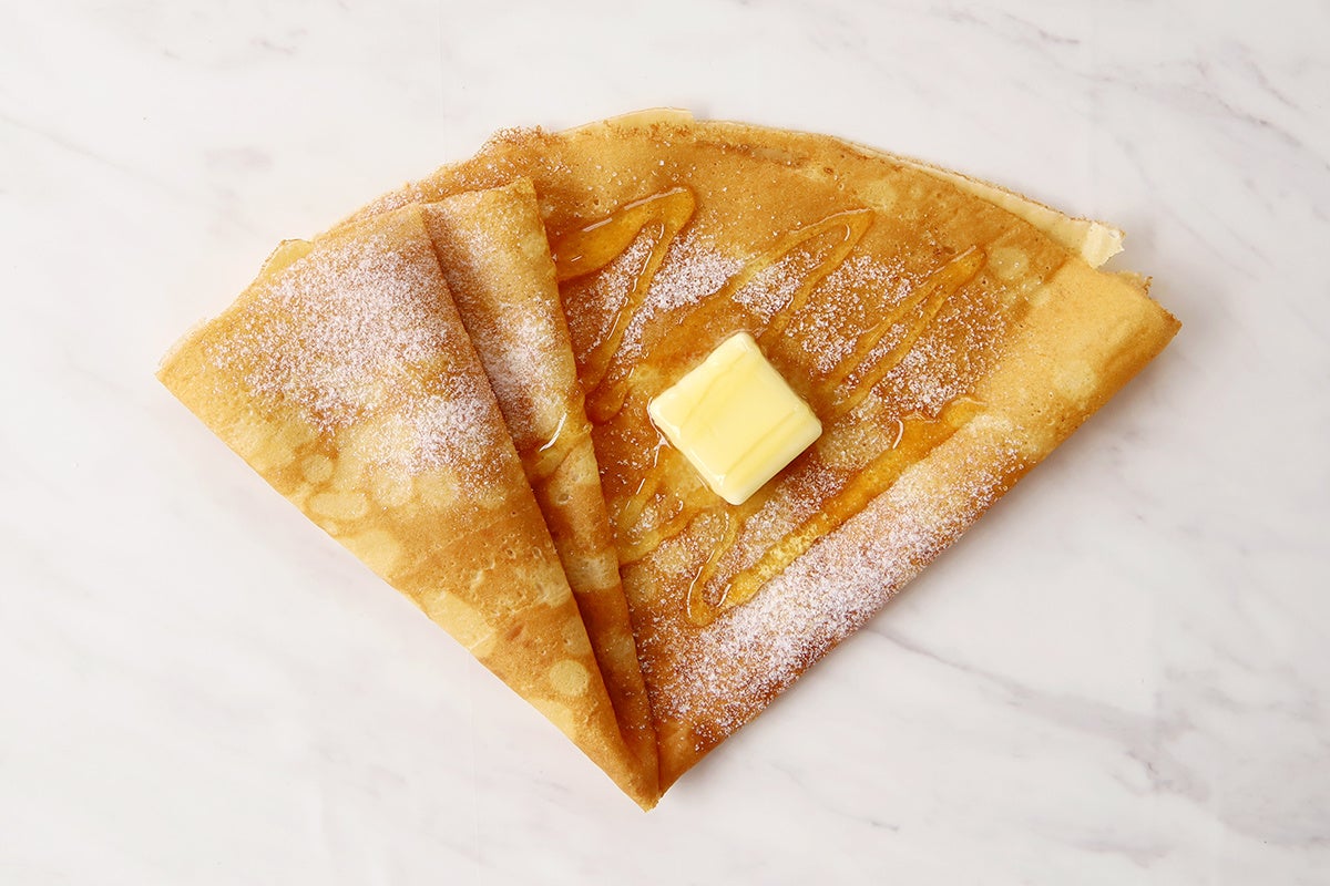焼き立てもちもち食感のクレープ生地に、すっきりとした甘みの六甲はちみつと発酵バターを贅沢に使用したシンプルなシュガークレープ。その軽い食感とほどよい甘みは一度食べたらやみつきに。