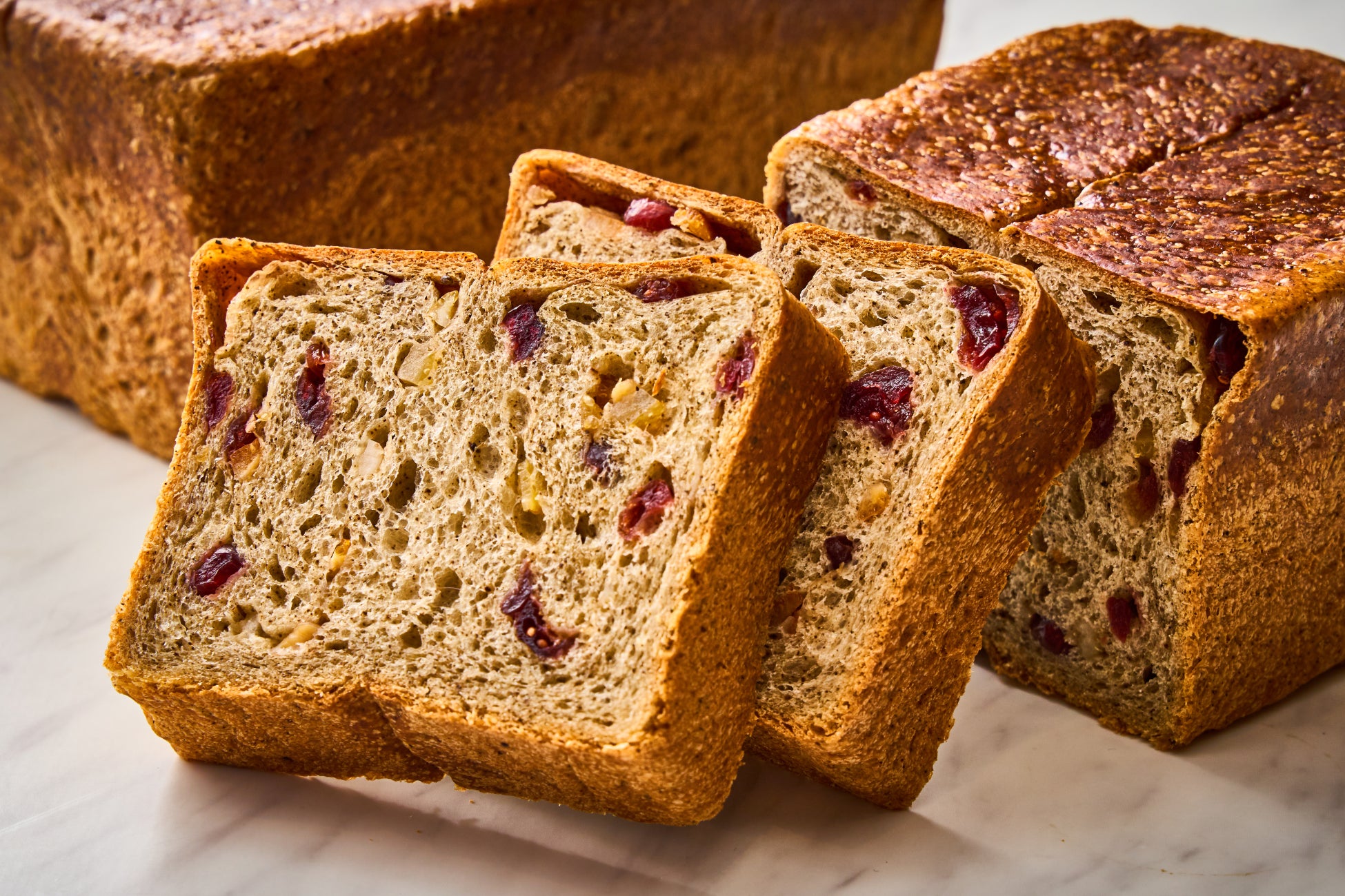 厳選素材が織りなすホテル自慢の「プレミアム パン・ド・ミ m」。そのリッチな味わいをベースに、今回は新たなフレーバーが登場します。香り高いアールグレイの茶葉を生地に練り込み、クランベリーやオレンジピール、レモンピールのドライフルーツをたっぷりと入れて、しっかりとした食べ応えと豊かな味わいに仕上げました。朝食やティータイムにぴったりの一品です。