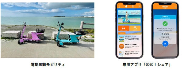 「沖縄GOGO!シェア」では、Future株式会社(本社:東京都港区、社長:井原慶子)が製造する電動三輪モビリティや運用アプリケーションを採用しました。