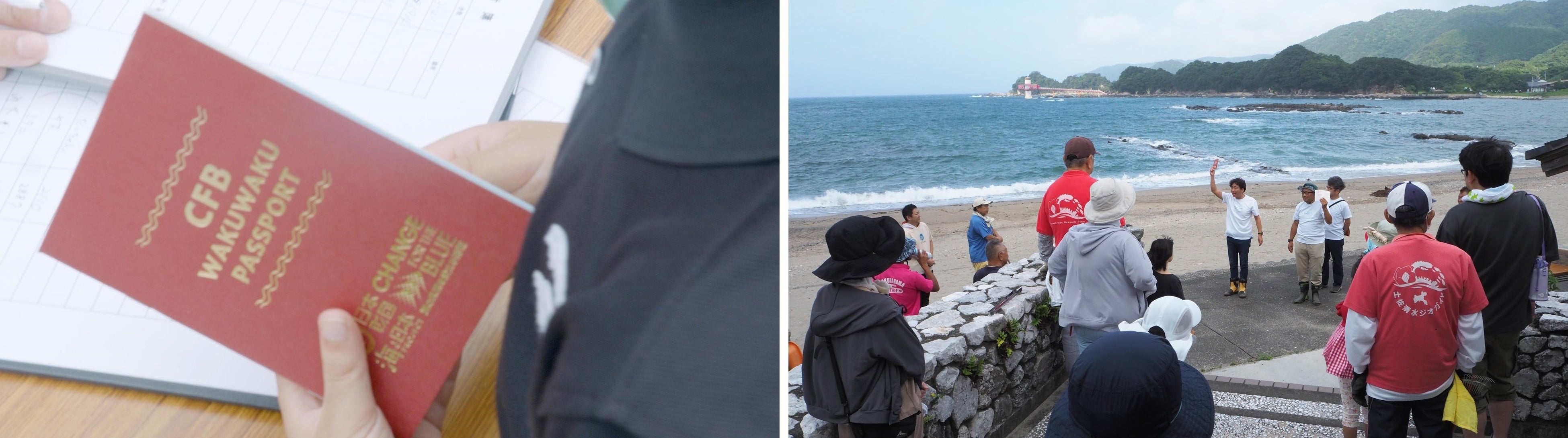 参加者には「ポイントマイレージ型 CFBワクワクパスポート」が配られました。「CFBワクワクパスポート」とは、今回の「土佐清水市竜串桜浜一斉清掃活動」のような、高知クリーンアッププロジェクト実行委員会が認定する「清掃活動」に参加してもらうと、ポイントが付与され、そのポイントに応じて、協賛企業の商品やサービスと交換できるスタンプラリー企画のことです。