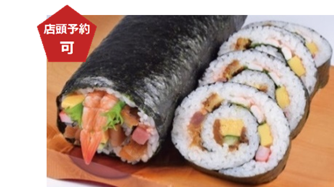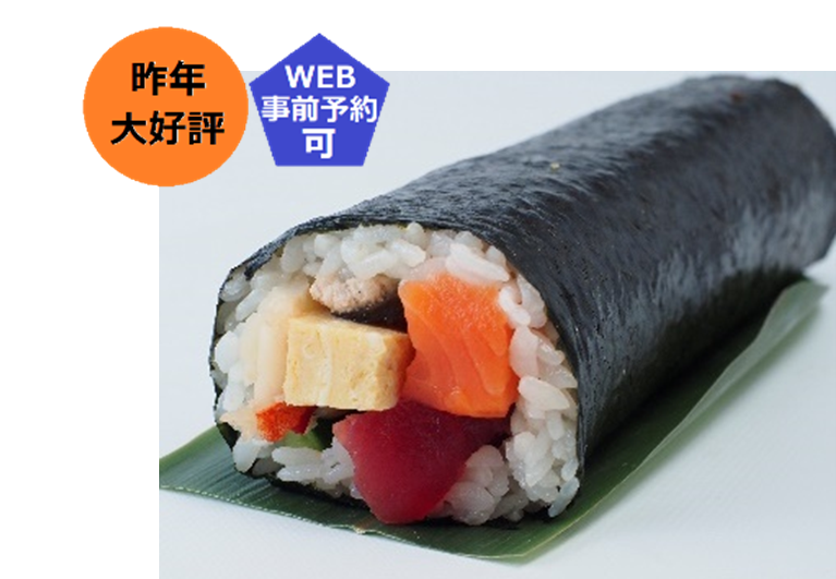 「WEB事前予約可」のマークがある恵方巻きは、WEBでの事前予約が可能です。