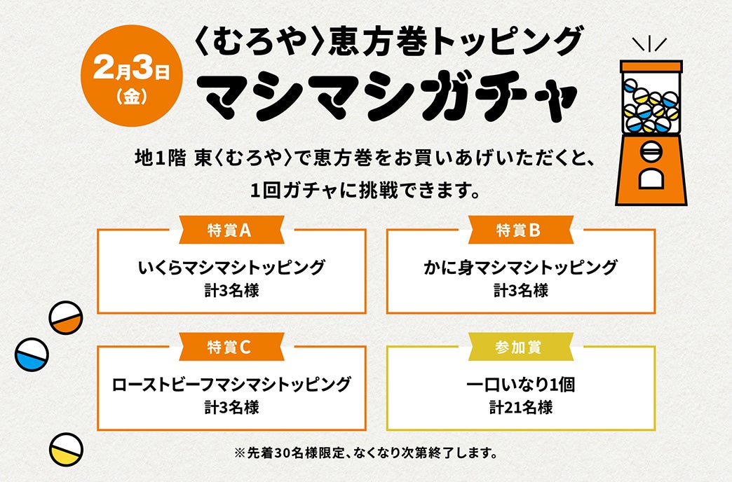 - 「恵方巻ガチャ」でトッピングをさらにマシマシ!<むろや>