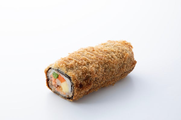 テ恵方巻を丸ごと揚げてみました。ンションも上がるあげあげ恵方巻。野菜やサーモンを豚ロースで巻き、衣をつけて揚げた恵方巻です。